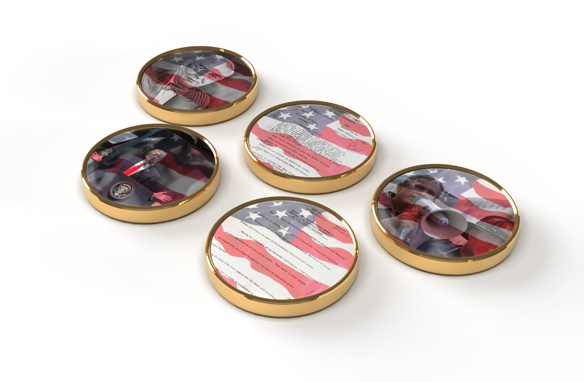 CHROMAKAIROS is producing a series of 35 collectible medallions, each featuring imagery from a significant moment in the history of US foreign policy, as part of the forthcoming AMERICA AT 250 initiative by a Washington, DC-based research and advocacy group.